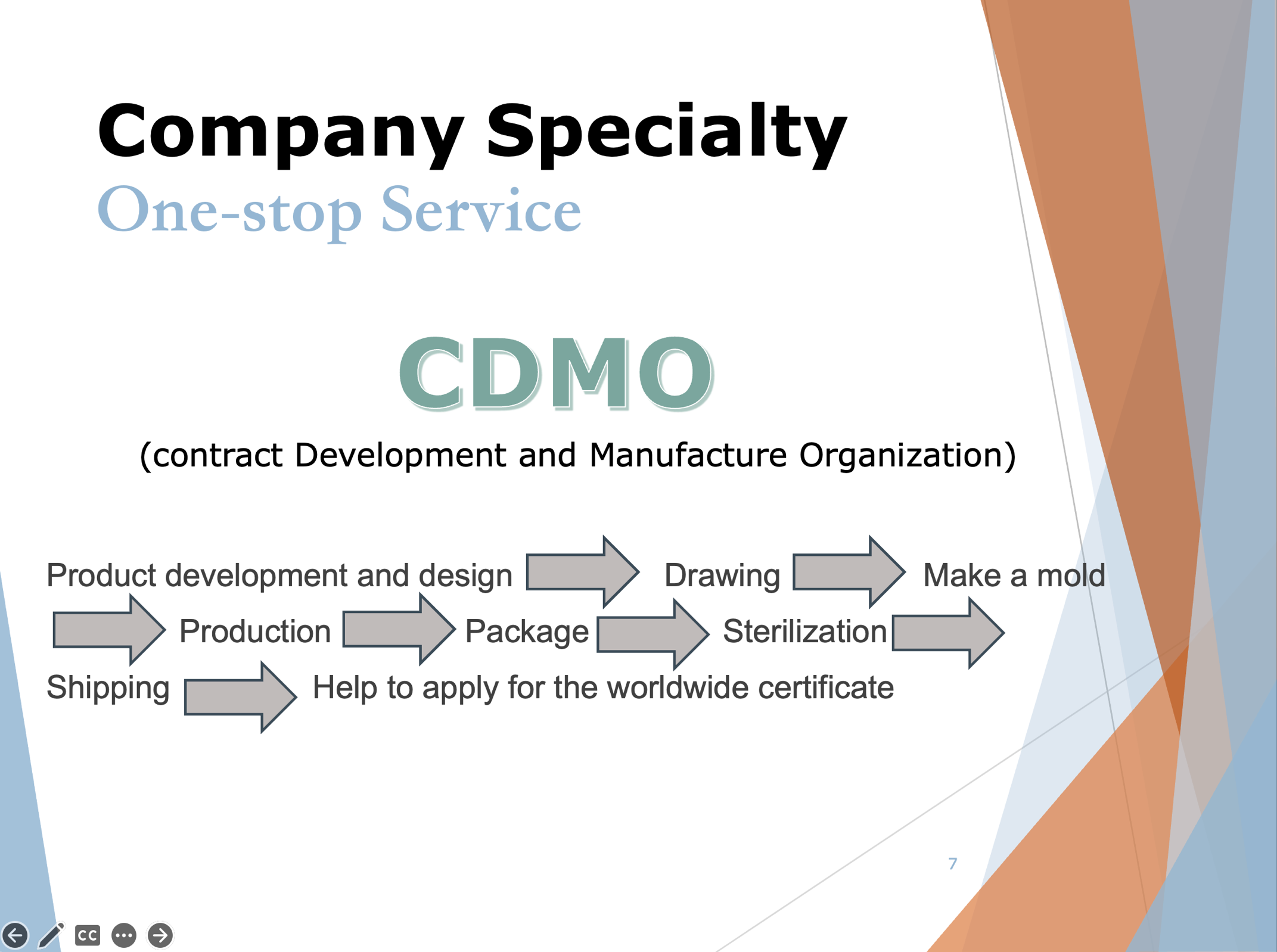 نقدم خدمات CDMO (منظمة تطوير وتصنيع تعاقدية) شاملة، من تطوير المنتج، والرسم، وصنع القوالب، والإنتاج إلى التعبئة، والتعقيم، والشحن العالمي، ودعم تطبيق الشهادات العالمية.